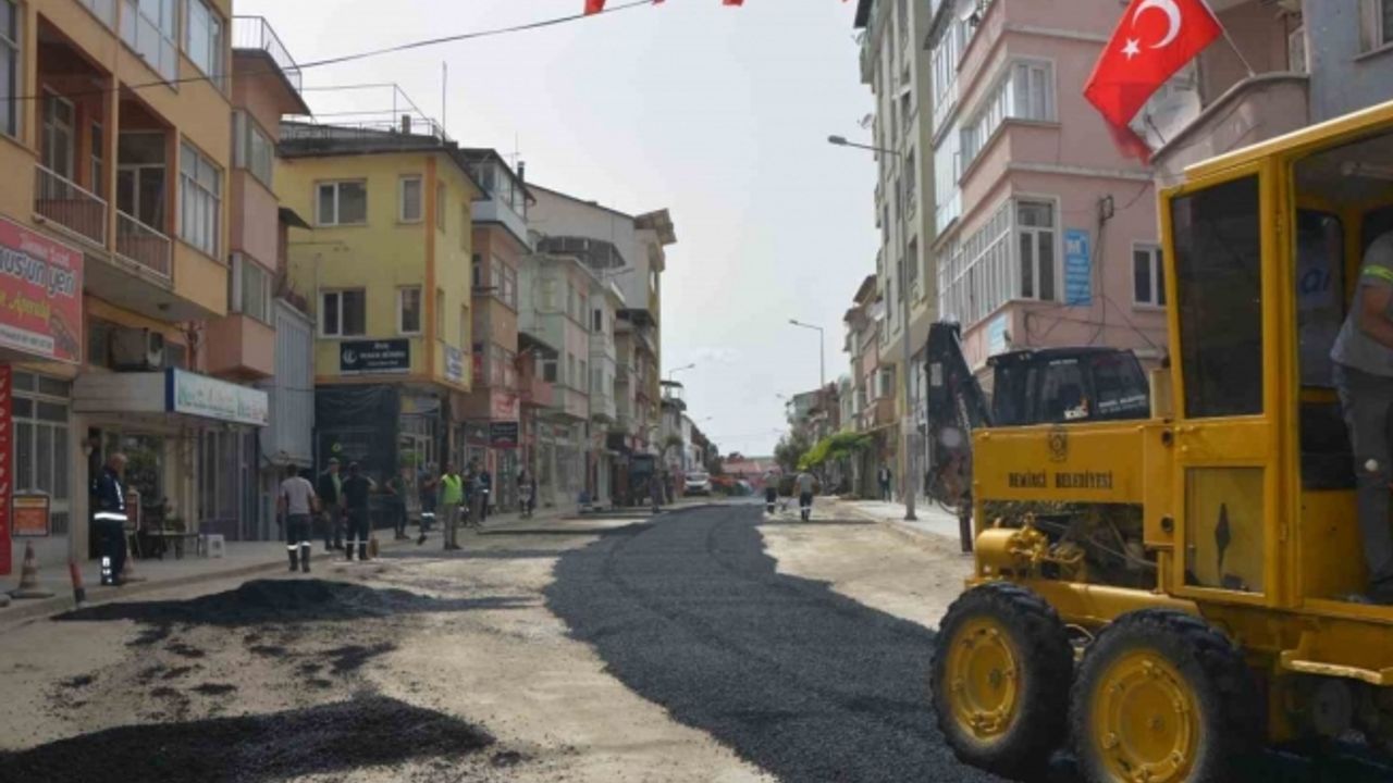 16 yıldır atıl vaziyette bulunan belediye bünyesindeki asfalt plentini yeniden faaliyete alan Belediye Başkanı Erkan Kara, altyapı dolayısıyla ulaşımda sıkıntı yaşanan ana caddelere plent makinesinde üretilen sıcak asfaltı yollara uyguluyor.