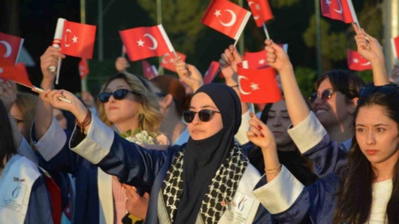 Mezuniyet yürüyüşüne bu yıl mezun olacak 580 öğrencinin yanı sıra Belediye Başkanı Erkan Kara, eşi Nermin Kara, Rektör Prof. Rana Kibar, İlçe protokolü, öğrenciler ve aileleri katıldı.