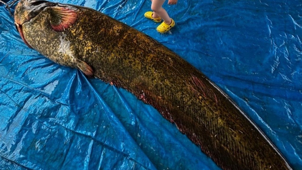 Manisa’nın Köprübaşı ilçesindeki Demirköprü Baraj Gölü’nde 114 kilogram ağırlığında ve 2.15 metre boyunda dev bir yayın balığı yakalandı.