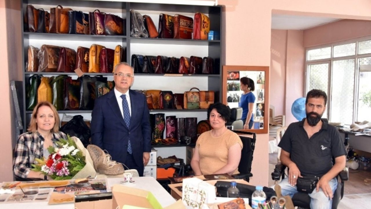Türkiye’ de eşi benzeri olmayan deri ürünleri imal eden Aysel Caferoğlu, Selami Tatlıcı ve Aysel Yavuz’u tebrik eden Başkan Kayda, el emeği göz nuru eserlerin keşfedilmesi gerektiğini söyledi.