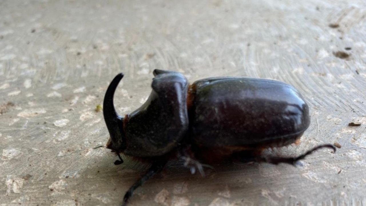Dünyanın en güçlü böceği olarak bilinen gergedan böceği, Manisa’nın Salihli ilçesinde bir çiftçi tarafından zeytin çapalarken bulundu.