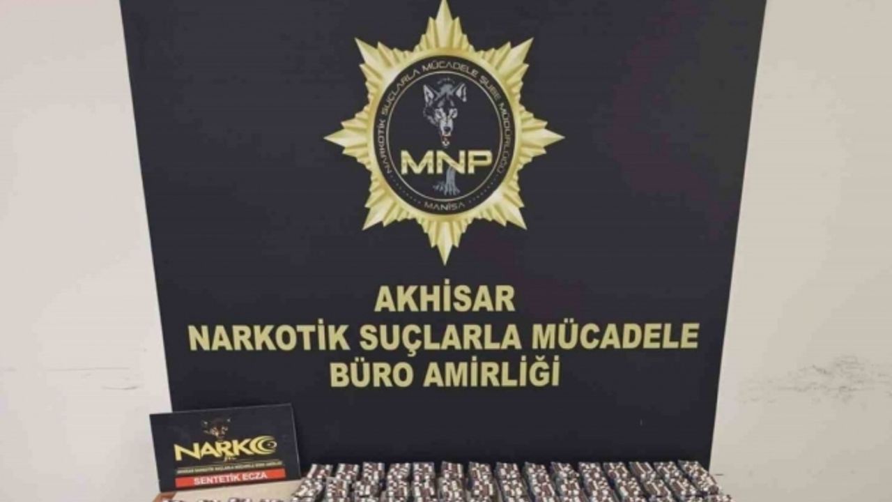Manisa İl Emniyet Müdürlüğü Narkotik Suçlarla Mücadele Şube Müdürlüğü Akhisar Narkotik Suçlarla Mücadele Büro Amirliği ekiplerince yapılan çalışmalar sonucu, İzmir-Balıkesir otobanı Çobanhasan mevkii üzerinde durdurulan araçta yapılan aramada 8 bin 400 adet sentetik uyuşturucu hap ele geçirildi. Konu ile ilgili gözaltına alınan aracın sürücüsü Ç.Ç. (45) çıkarıldığı adli makamlar tarafından tutuklandı.