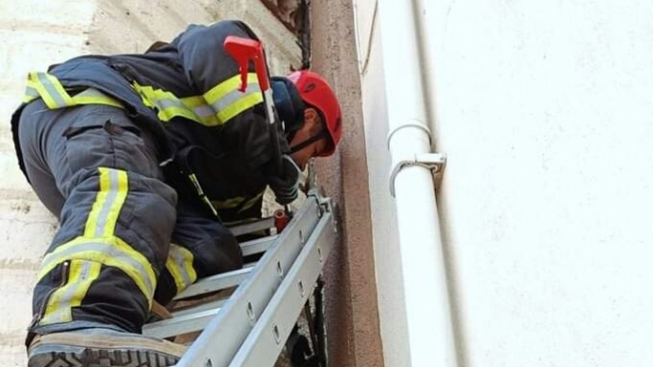 Manisa’nın Sarıgöl ilçesinde minare ile cami duvarı arasına sıkışan kedi, itfaiye ekiplerinin titiz çalışmasıyla kurtarıldı.
