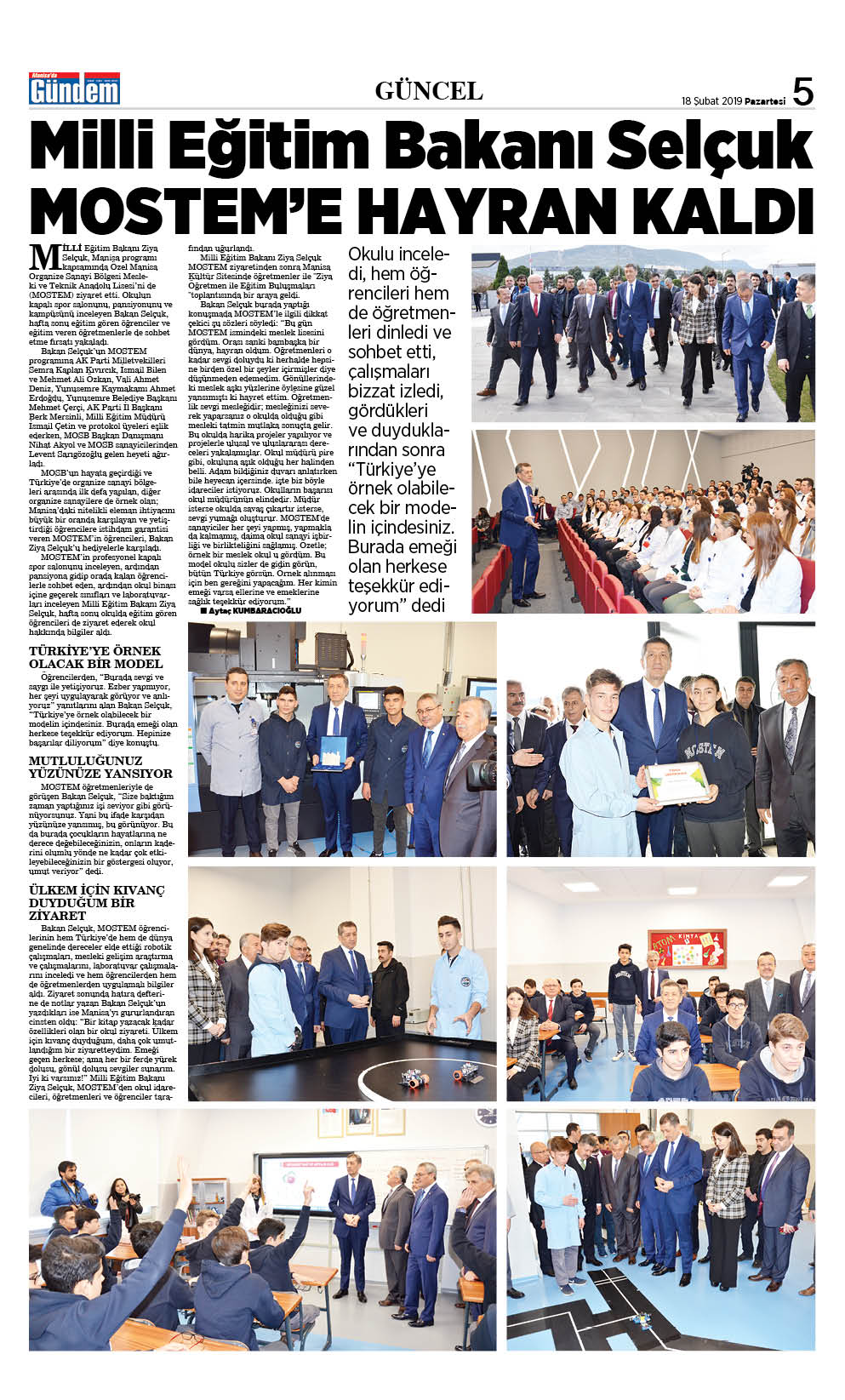 Bakan Selçuk, MOSTEM öğrencilerinin hem Türkiye’de hem de dünya genelinde dereceler elde ettiği robotik çalışmaları, mesleki gelişim araştırma ve çalışmalarını, laboratuvar çalışmalarını inceledi ve hem öğrencilerden hem de öğretmenlerden uygulamalı bilgiler aldı. Ziyaret sonunda hatıra defterine de notlar yazan Bakan Selçuk’un yazdıkları ise Manisa’yı gururlandıran cinsten oldu: “Bir kitap yazacak kadar özellikleri olan bir okul ziyareti. Ülkem için kıvanç duyduğum, daha çok umutlandığım bir ziyaretteydim. Emeği geçen herkese; ama her bir ferde yürek dolusu, gönül dolusu sevgiler sunarım. İyi ki varsınız!”