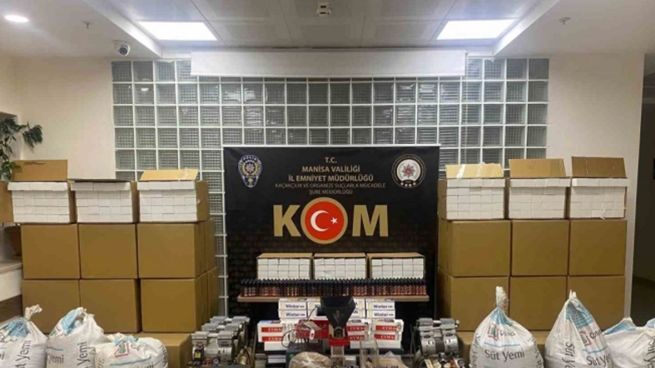 Manisa İl Emniyet Müdürlüğü Kaçakçılık ve Organize Suçlarla Mücadele Şube Müdürlüğü ve Narkotik Suçlarla Mücadele Şube Müdürlüğü görevlilerince Yunusemre ilçesinde F.K. (50) isimli şahsın iş yeri olarak kullandığı adreste yapılan aramada, 465 kilogram açık kıyılmış tütün, 19 bin 400 adet doldurulmuş sigara, 558 bin 200 adet boş makaron, 3 adet elektrikli sigara sarma makinası, 3 adet kompresör, 1 adet tütün tartımında kullanılan terazi, 320 adet elektronik sigara likiti ve 1.000 adet sökülmüş bandrol ele geçirildi. Şüpheli hakkında adli tahkikata başlandığı bildirildi.