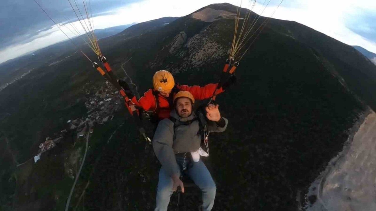 Manisa’nın Soma ilçesinde 3 Aralık Dünya Engelliler Günü kapsamında öğretmen Abdullah Yeşil ve eğitmen Yiğit Kartal, tandem paraşüt uçuşuyla özel çocuklara destek çağrısını gökyüzüne taşıdı.