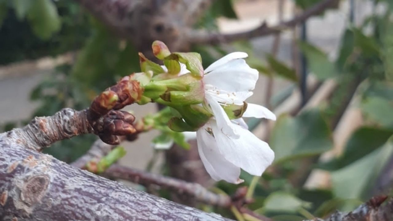 Geçtiğimiz aylarda meyvelerinden toplayıp tüketilen kiraz ağacının daha yapraklarını dökmeden tekrar çiçek vermesi çiftçi Ahmet Karadağ’ı sevindirdi. Karadağ, "İnşallah ikinci ürün alırım ancak bu mümkün değil. Ilık havalara aldanmış olsa gerek. Geceleri artık soğuk olmaya başladı. İkinci kez çiçek vermesi oldukça ilginç. Olsun, güzelliği yeter" dedi.