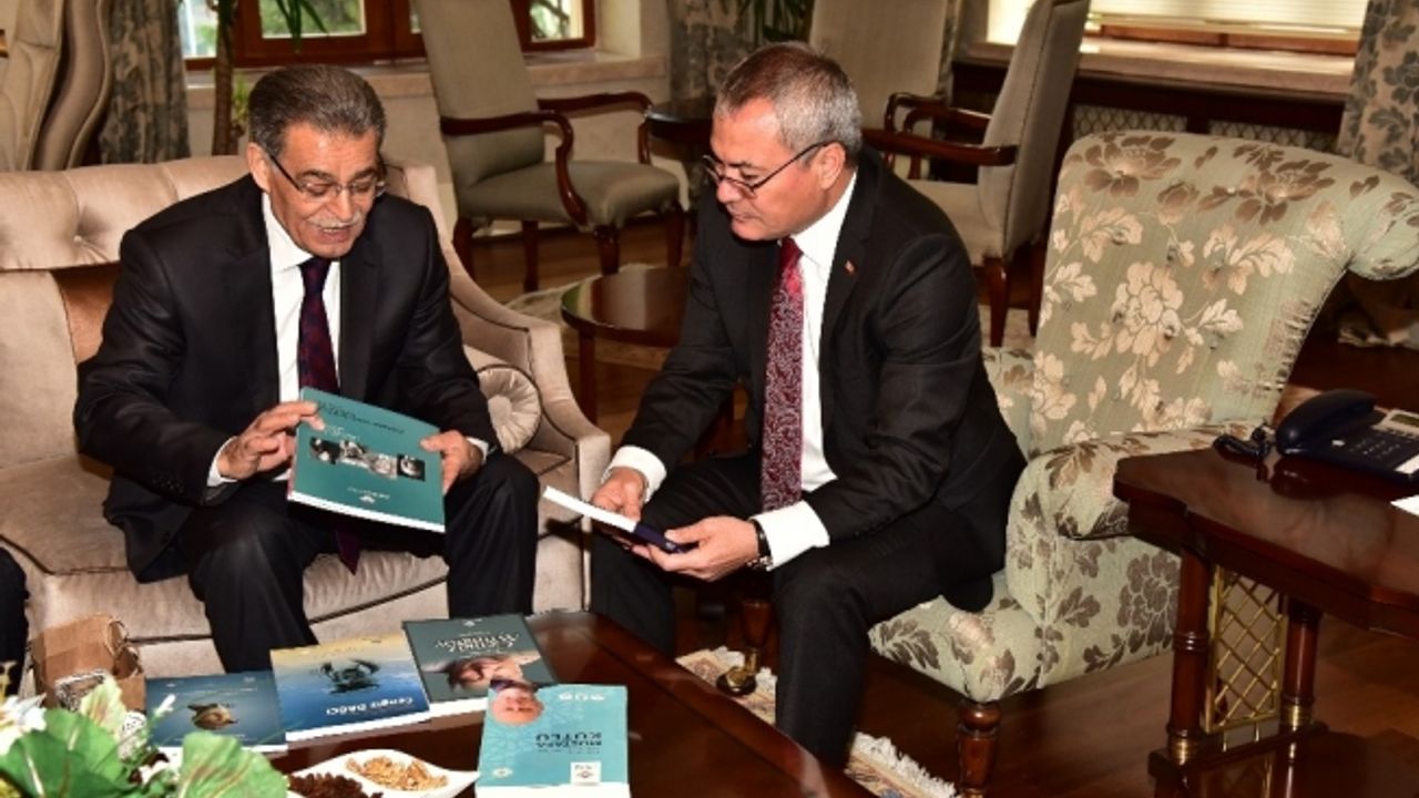 Anadolu Mektebi Yazar Okumaları Projesi kapsamında düzenlenen etkinliğe katılmak üzere Manisa’ya gelen eski Tarım ve Köyişleri Bakanı Prof. Dr. Sami Güçlü, Manisa Valisi Ahmet Deniz’e nezaket ziyaretinde bulundu.