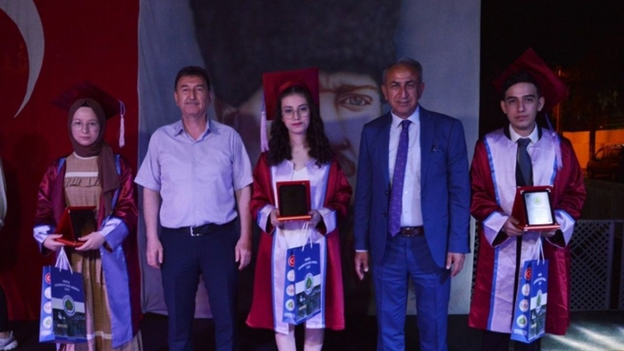 Okul birincisi Dilay Gürcan, ikincisi Azime Şen ve üçüncüsü Vural Özçelik’e protokol üyeleri tarafından plaket takdim edildi. Dilay Gürcan okul kütüğüne plaket çaktı. temsili diplomalarını alan öğrenciler Müzik Öğretmeni Ömür Yılmaz eşliğinde önce okul marşını söyledi, ardından keplerini havaya fırlatarak mezuniyet coşkusunu yaşadı.