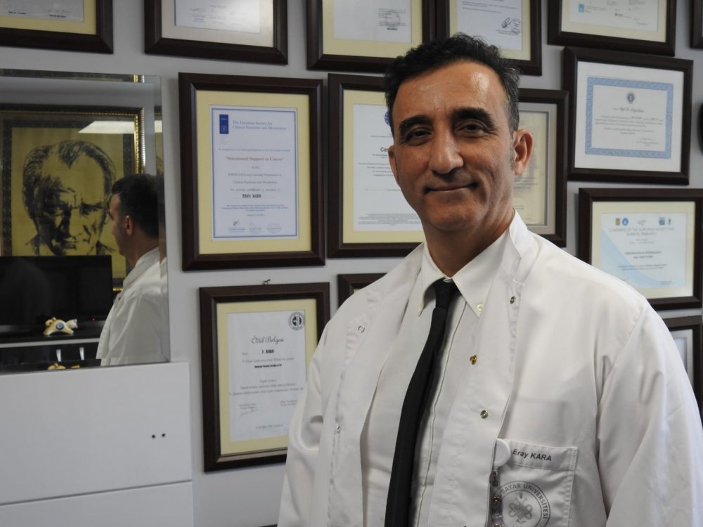 Geçtiğimiz yıllarda yaşanan pandemiden dolayı önümüzdeki 10 yıl içerisinde kanser sıklığında bir artış beklendiğini vurgulayan Prof. Dr. Kara, "Bütün dünya genelinde bütün kanserler için, önümüzdeki 10 yıl için kanserden ölümlerin artacağı gerçeği var. Bunun yansımasını biz 4-5 yıl sonra daha net göreceğiz, tıbbi olarak, bilimsel olarak. Bu pandemi kaynaklı demeyelim ama sebep olduğunu söyleyebiliriz önümüzdeki 10 yıldır bu vakalardan hepsinin artacak. Yapay Zeka tıbbın geldiği nokta kanserle mücadelede çok önemli avantajları oldu fakat Pandemi mücbir sebep birçok noktada kanserle mücadelede geri adım atmak durumunda bıraktı. Bunun yansımaları hem dünyada hem Türkiye'de olacaktır. Özellikle vakalar gençlerde de çoğaldı. Dünya genelinde ve Türkiye'de ilk 3 sırada bu genellikle kanser türlerine baktığımızda hormon kaynaklı, örneğin erkeklerde her iki cinsiyete de akciğer kanseri yüksek. Kadınlarda meme kanseri birinci sırada, arada bir de olsa yer değiştiriyor. Ama bunlar meme kanseri kadınlarda en yüksek, erkeklerde de hormon bağımlı dediğimiz prostat kanseri erkeklerde ilk 3 sırada. Fakat kolon ve rektum kanseri üst sırada yer alıyor." diye konuştu.