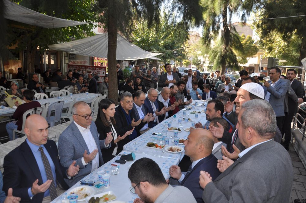 Manisa Hatuniye Camii İmamı Hayrettin Çoban, maneviyatı hayli yüksek olan hayır yemeğine katılanların ellerini semaya açmasıyla yemek duasında bulundu. Hayır yemeğinde emeği geçen tüm çarşı esnaflarının da ölmüşlerine dualar edildi. Edilen dualara hep birlikte amin diyen davetliler, böylesi anlamlı bir yemeği organize eden Koşar Ailesi adına Arif Koşar’a teşekkürlerini iletti.