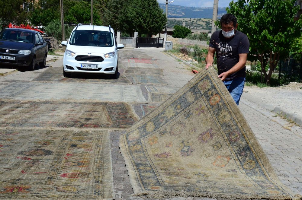 Asfaltta 15-20 gün bekletilen halılar; üzerinden kamyonlar, otomobiller, motosikletler ve insanların geçmesiyle birlikte kalın olan dokusunu yitirip inceliyor. Yollara serilen eskitilmesinin ardından yollardan toplanarak yıkama işleminden geçiriliyor. Özenle yıkanan halılar tozlarından tamamen arındırıldıktan sonra gerekli kontrolleri tamamlanarak pazardaki yerini alıyor. Eskitilme işlemi tamamlanan halılar yurt dışı pazarında yoğun talep görüyor. Antika görünümü verilen halılar özellikle Amerika’ya ve Avrupa ülkelerine ihraç ediliyor.
