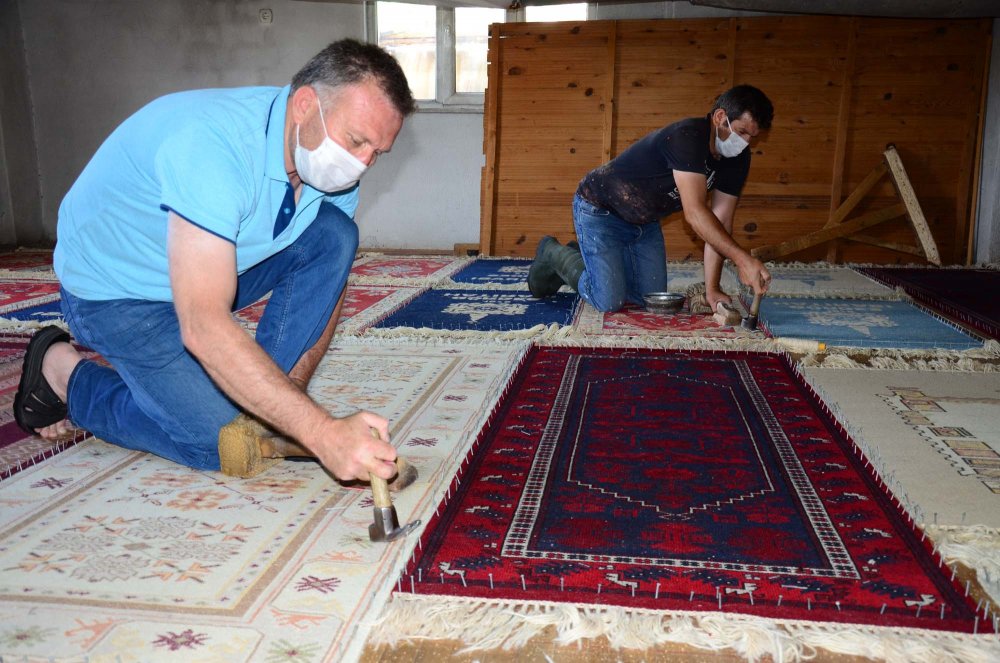 Halı yıkama işletmesi sahibi Ali Sarı, halıların eskitilme işlemini anlattı. Daha çok yurt dışından talep geldiğini kaydeden Ali Sarı, “Biz önce halı tezgahtan geldikten sonra yüzünü bir makinede kırkıyoruz, inceltiyoruz. Tüylü geldiği için biraz inceltip ondan bir yıkayıp buraya yola getiriyoruz. Yolda yaklaşık bir 15-20 gün duruyor. Araçlar üzerinden geçtikçe inceliyor ve düğümler eskiyor. Daha sonra yıkıyoruz, parlatıyoruz ve müşteriye sevk ediyoruz. Bu işlemi yıllanmış, eskimiş havasını vermek için yapıyoruz. Yurt dışında talep buna daha çok. Talep eskimiş halıya olduğu için bu şekilde istiyorlar. Amerika, İngiltere, Almanya, Fransa gibi büyük ülkeler, yani ekonomisi düzgün olan ülkelere genelde daha çok gidiyor. Türk düğümü olduğu için alıyorlar. Yabancı ülkelerde de böyle halılar dokunuyor, ama onlar bu havayı veremiyor” diye konuştu.