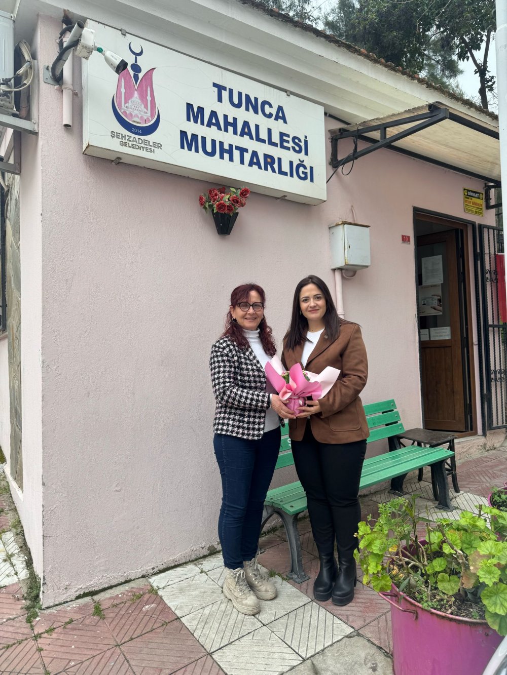 Başkan Aytaç düzenlenen program kapsamında Şehzadeler İlçesinde aktif olarak muhtarlık görevini sürdüren Arda Mahallesi Muhtarı Sevcan Alkan, İbrahim Çelebi Mahalle Muhtarı Meliz Mısırlıoğlu, MimarSinan Mahalle Muhtarı Nuray Pirin, Nişancıpaşa Mahalle Muhtarı Nevin Becerikli ve Tunca Mahalle Muhtarı Suna Marangoz’u ziyaret etti. Ziyaretler de mahalle sorunları ve muhtarların çalışmaları üzerinde durulurken, yerel yönetimlerde kadın temsilinin önemi vurgulandı.