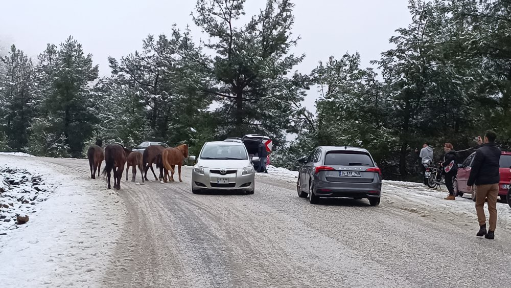 Spil Dağı Milli Parkına çıkan yolda yılkı atları sürüsü ise ziyaretçileri adeta karşıladılar. Yılkı atlarını gören vatandaşlar fotoğraf çekerek, araçlarından yiyecek verdiler.