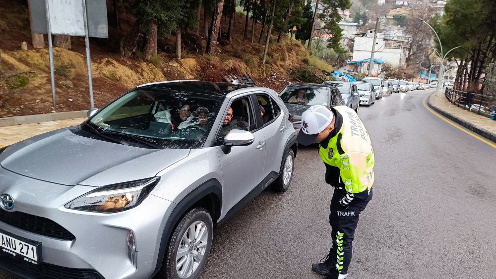 Öte yandan Emniyet Müdürlüğüne bağlı trafik ekipleri, Mevlana bölgesinde araçları durdurarak kış lastiği ve zincir kontrolü yaparak, uygun olmayan araçların Spil Dağı Milli Parkı’na çıkmasına izin vermediler.
