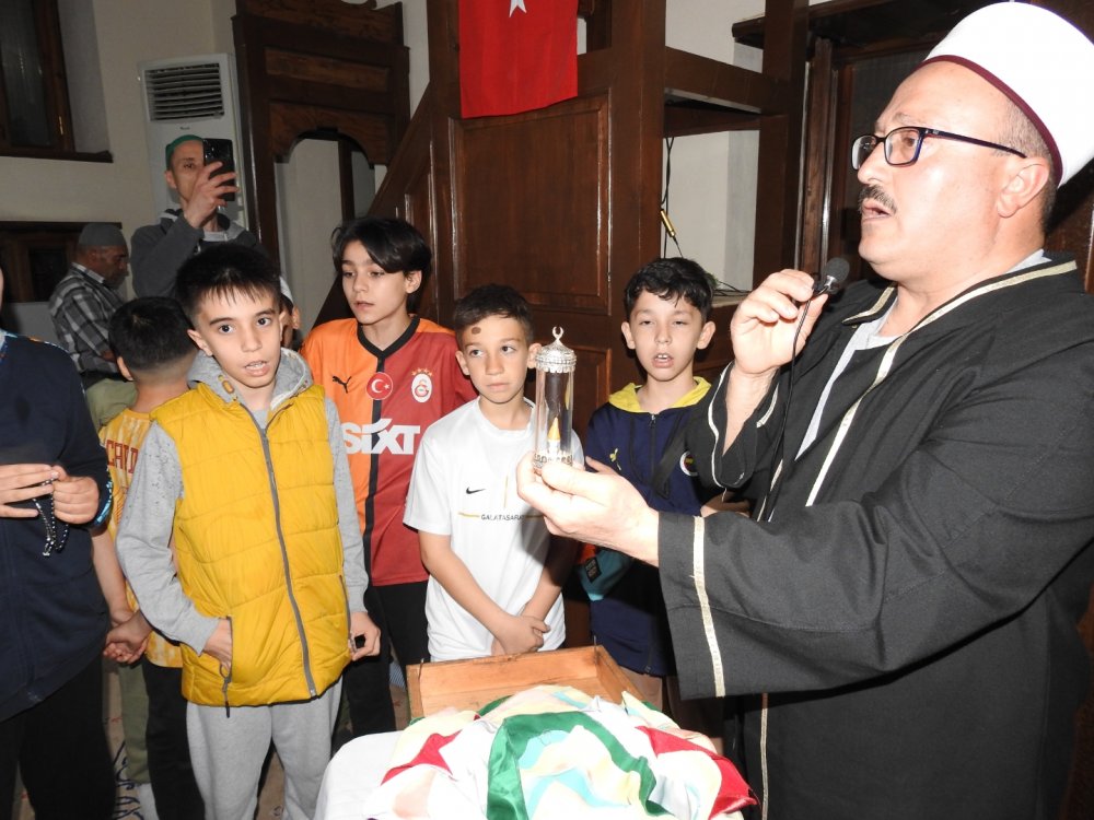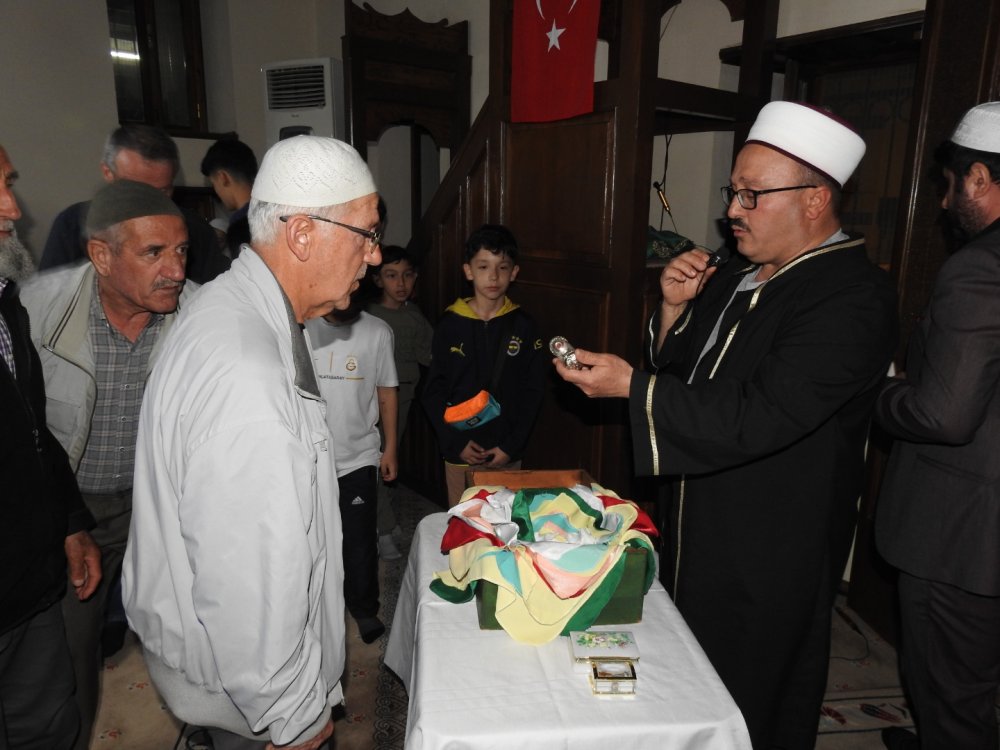 Kılınan son teravih namazı ardından Haki Baba Veli Camii İmam hatibi İsmet Öztürk ve müezzini Ramazan Taşkıran tarafından İbrahim Çelebi Camiinden getirilen Sakalı Şerif, teravih namazından sonra cemaate gösterildi.