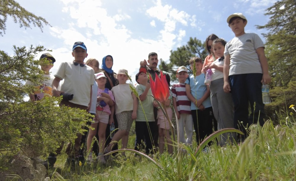 Manisa'da koparmanın cezası 557 bin 212 lira olan ve Spil Dağı Milli Parkı'nda açan laleler, Turgutlu Halil Kale Fen Lisesi ve Akhisar Akademik Kültür Koleji Ortaokul öğrencilerine tanıtılarak, bilgi verildi.