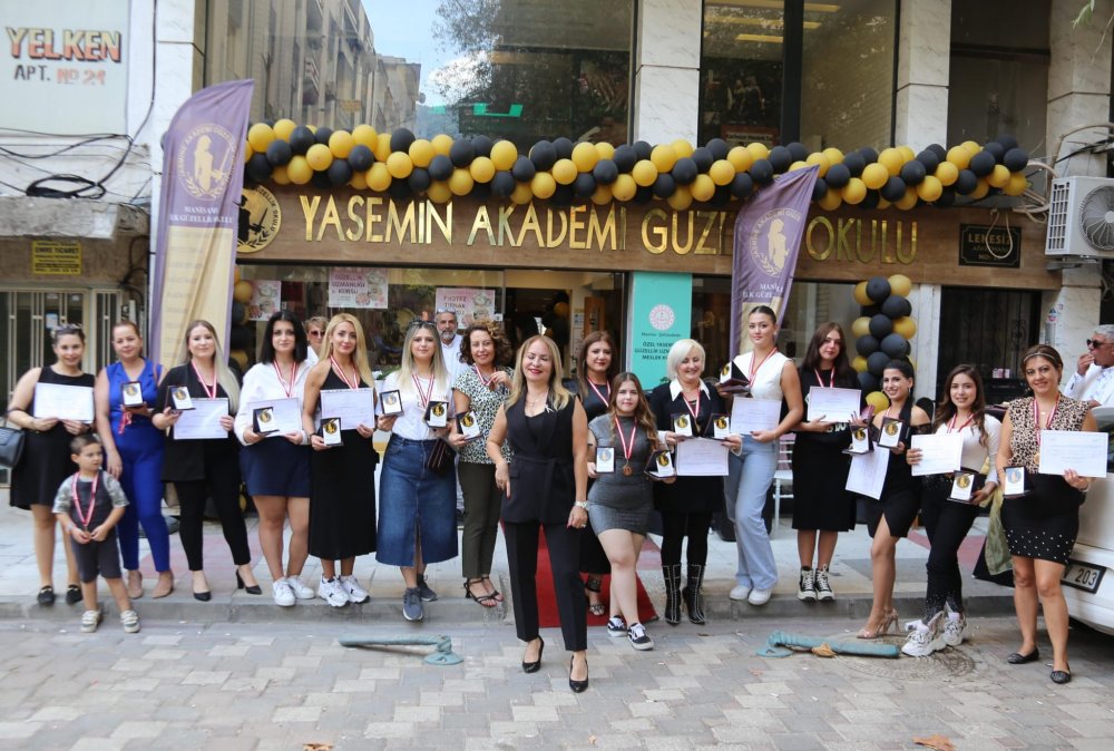 Şehzadeler ilçesi Yarasalar Mahallesinde yer alan Yasemin Akademi Güzellik Okulu'nda gerçekleştirilen mezuniyet törenine Manisa Berberler ve Kuaförler Odası Başkanı Adem Şahin, Yunusemre Mesleki Eğitim Merkezi Müdür Başyardımcısı Senem Mutlu, İsmet İnönü Mesleki ve Teknik Anadolu Lisesi Müdürü Okan Şahin, İsmet İnönü Mesleki ve Teknik Anadolu Lisesi Güzellik Hizmetleri öğretmeni Şaban Gürcü, Manisa Erzurum Dadaşlar Derneği Başkanı Adem Yılmaz ile davetliler ile kursiyerler ve aileleri katıldı.
