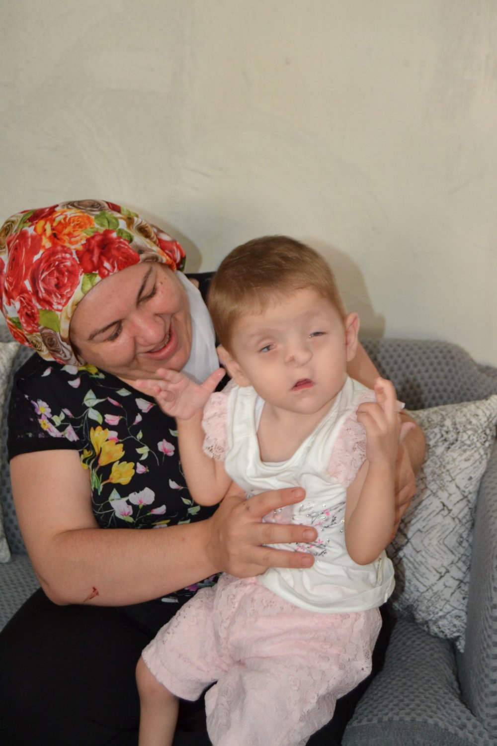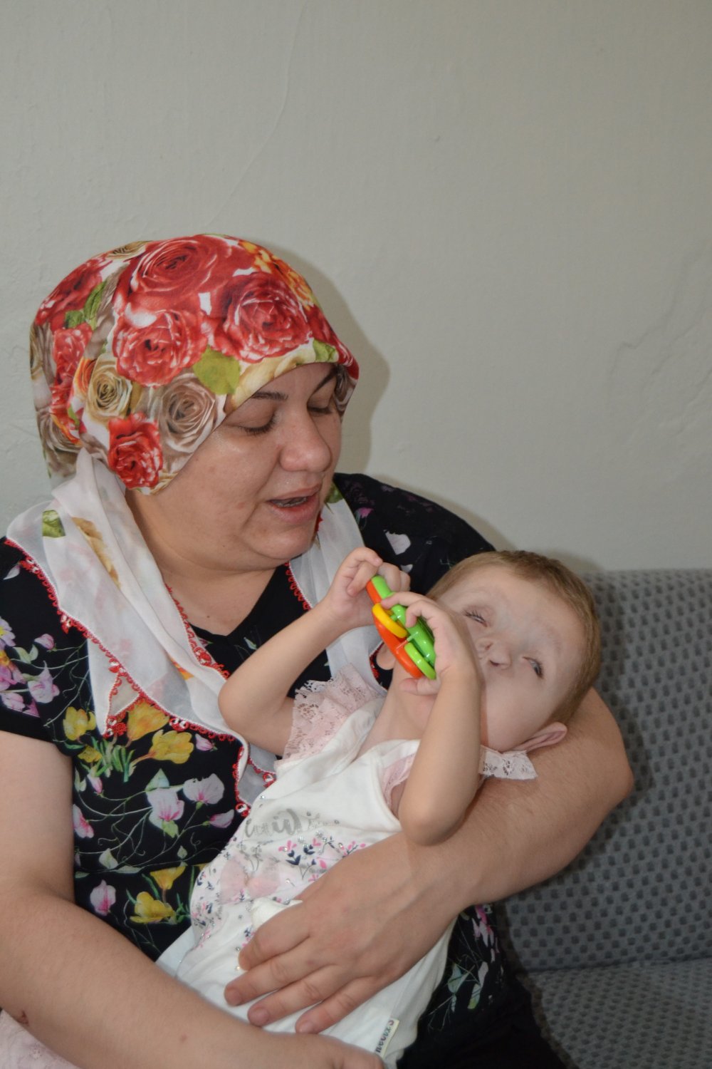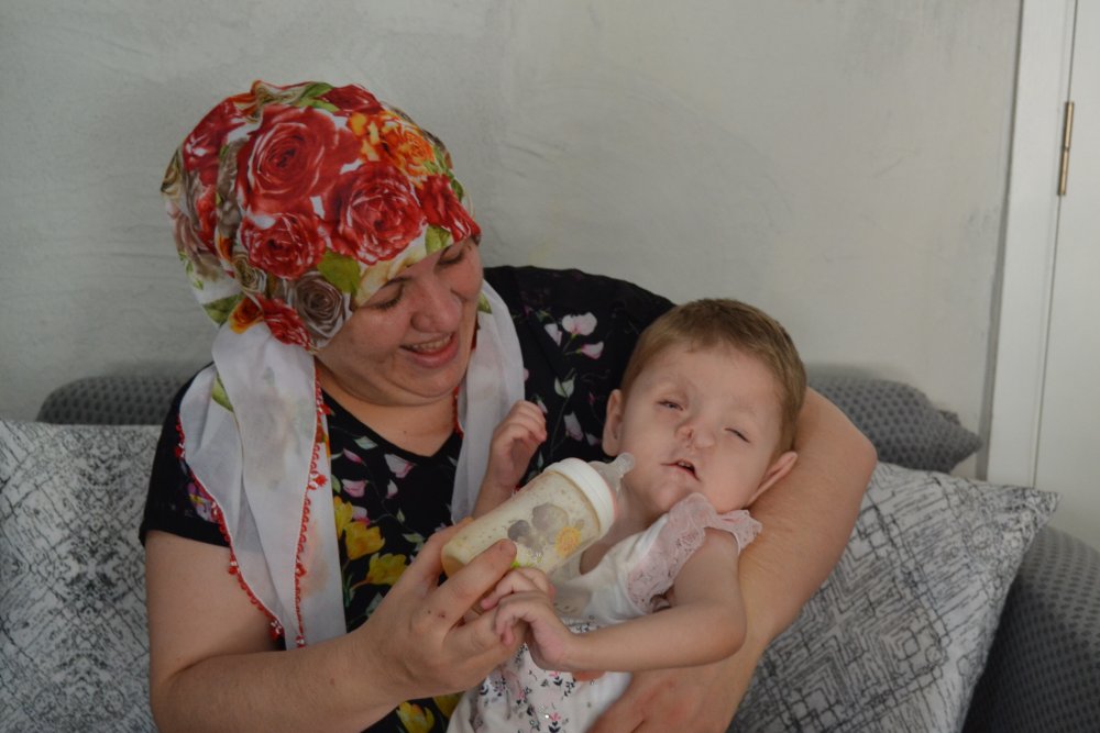 Kızının doğumdan sonra 2 hafta boyunca yoğun bakımda kaldığını ve doktorların yaşama şansı vermediğini belirten anne Pınar Şahin, “Bazı rahatsızlıkları henüz anne karnında iken belli oldu. Ancak göz, kulak, kalp gibi rahatsızlıkları anlaşılmadı. Doğduktan sonra tüm rahatsızlıkları ortaya çıktı. Bu ayak parmak eksikliği falan hiç belli olmadı. Doğumundan sonra 2 hafta boyunca kucağıma alamadım. Yoğun bakımda zor bir tedavi süreci geçirdi. Bu süreçte doktorlar da kızıma yaşama şansı vermedi. 3 yaşındaki kızımın gözleri şu anda görmüyor. Kulakları duymuyor. Burun delikleri yok. Ayak parmakları eksik. Sırtında hemanjiyosu var. Beyinde buruna doğru bir sarkma var. Ve beyninde boşluklar var. Kalbinde bir delik vardı. Ama deliğin büyüme gelişimi şimdilik durdu. Bunlarla birlikte karaciğerinde hemanjiyo var. Böbreğinin bir tanesi de ufak. Şuanda sadece göz ve kulaklarından tedavi olabiliyor. Rutin kontrolleri dışında herhangi başka bir işlem yapılamıyor. Böbreği ve karaciğeri ile kalbi sürekli kontrol altında tutuluyor. Bunun içinde 3 ayda bir hastaneye gidiyoruz” dedi.