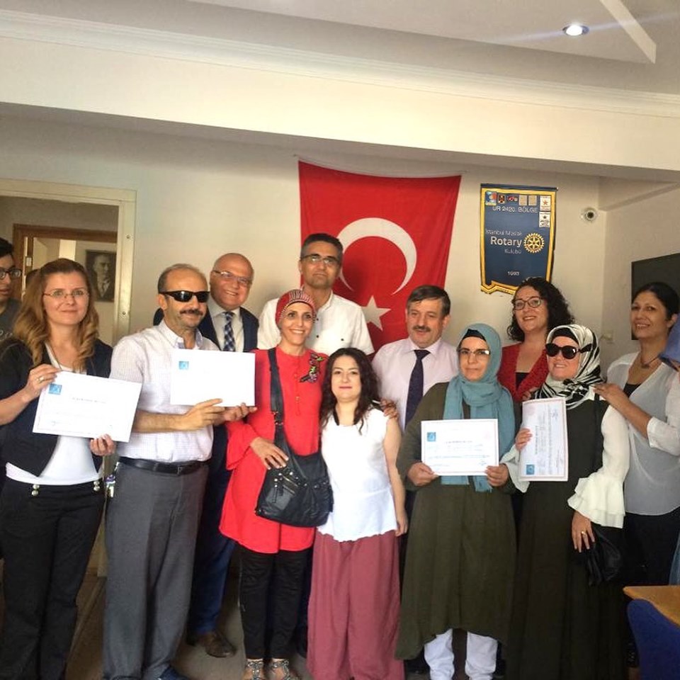 Manisa’da Altı Nokta Körler Derneği ve Şehzadeler Halk Eğitim Merkezi işbirliği ile görme engelliler için Braille alfabesi ile okuma yazma kursu açıldı. Dr. İbrahim Türek Altı Nokta Eğitim ve Kültür Merkezi’nde düzenlenen kurs sonunda sertifika almaya hak kazanan 7 görme engelliye sertifikaları verildi. Düzenlenen törene Şehzadeler Kaymakamı Hüsnü Çaykara, Şehzadeler Halk Eğitim Merkezi Müdürü Osman Kuşçuoğlu ve görme engelliler katıldı. Dernek Başkanı Hüseyin Pehlivan, “Brail alfabesi görme engellilerin okuyup yazabildikleri tek sistem. Şehzadeler Halk Eğitim Merkezi ile birlikte kursu açtık. 142 saatlik bir kursla 7 görme engelli okuma yazmayı öğrendi. Bu kişiler bugüne kadar eksiklik hissediyordu. Kabartma yazılı levhaları kolaylıkla okuyabilecekler. Kurs sonunda 7 kişiye sertifikaları verildi” diye konuştu. / Nermin UÇTU