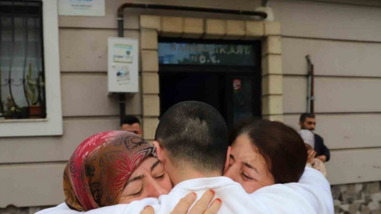 Evlerinin önünde annesi Sultan Arslan, kardeşleri ve akrabaları tarafından karşılanan Engin Arslan, burada ailesi ile sarılarak hasret giderdi.