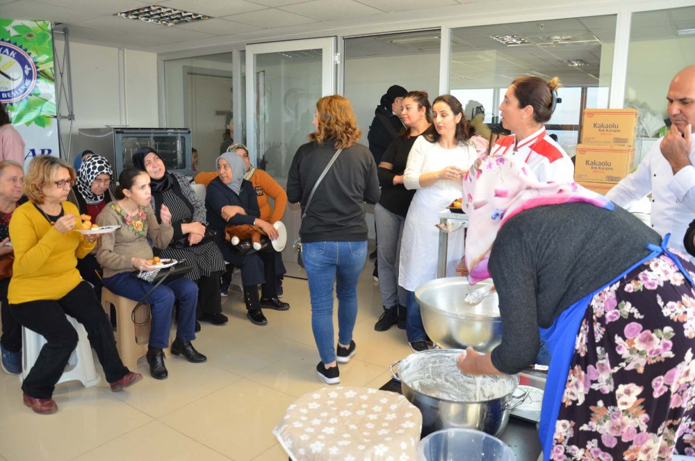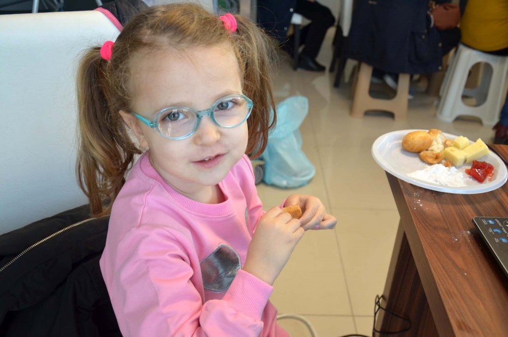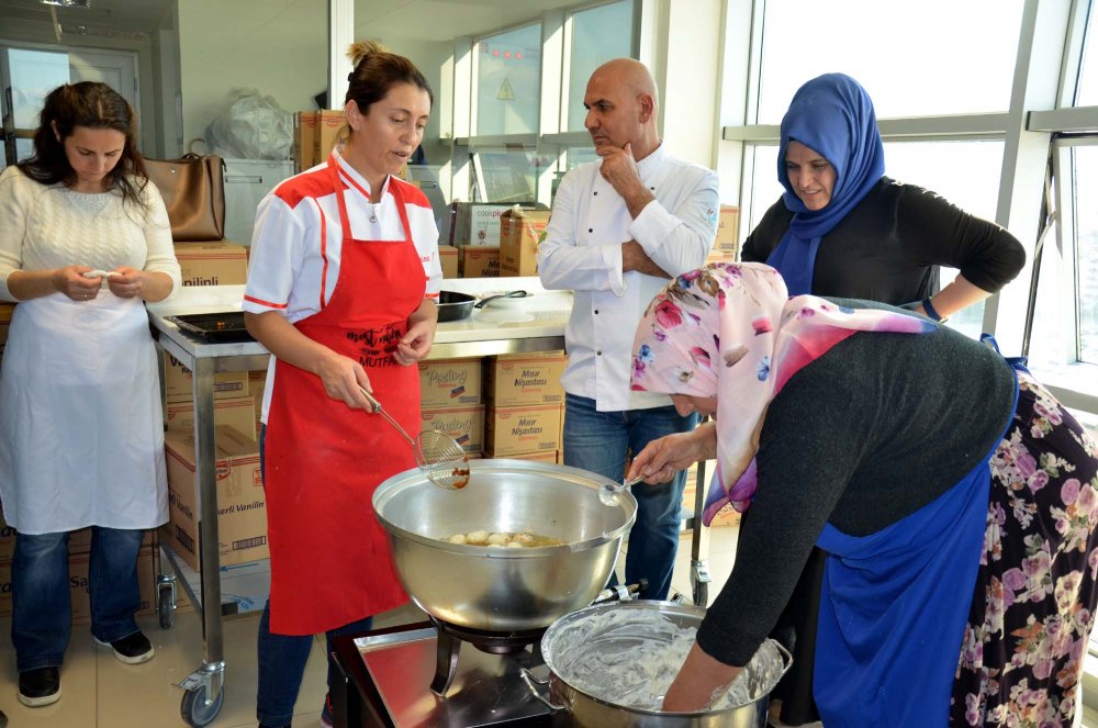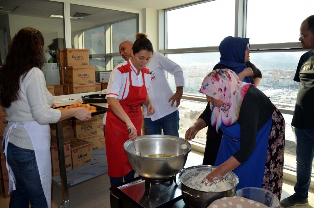 Glutensiz lokma yapım etkinliğinde kendisi de çölyaklı olan Emine Yılmaz, lokma yapımının tarifini verdi. İlk kez lokmanın tadına bakan çocuklar da, çok beğendiklerini söyledi. / Nermin UÇTU