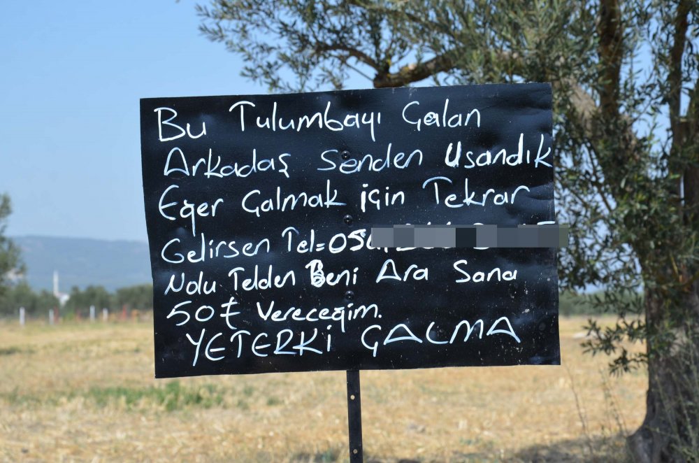 Yazıyı görenlerin şaşırdığını anlatan İslam Yaşar, “Her yıl 15-20 kez çalıyorlar. Biz bunun çalınmasından bıktığımız için bir yazı tasarladık, en sonunda bu yazıyı astık. Yani bıktık, onlar çalıyorlar biz ısrarla yeniden takıyoruz. İnşallah buz kez son olur. Şimdi 50 lira bir fiyat belirledik, eğer gelip yine çalacağım derse çalma 50 lira vereceğim diye sesleniyorum. Bunu hurdaya verse 20-30 lira etmez. Ama biz bunun yenisini 170-180 liraya alıyoruz. Biz de çalınmasından usandık artık. Bu huylarından vazgeçsinler, lazım olursa telefon numaram orda, bana telefon açsınlar. Ben kendilerine ne kadar para isterlerse vereceğim” dedi. Hayvanlar için dağlarda çeşmeler yaptırdığını dile getiren İslam Yaşar, şu sözlerle seslendi: ‘Bu tulumbayı çalan arkadaş senden usandık. Eğer çalmak için tekrar gelirsen 05…..nolu telden beni ara. Sana 50 TL vereceğim. Yeter ki çalma.”/ Nermin UÇTU