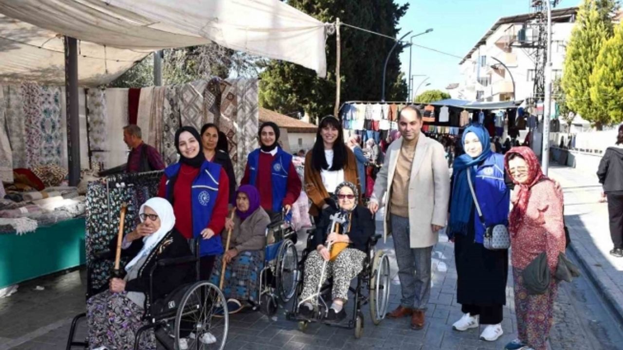Sonbaharın sonlarına doğru havanında güneşli olduğu bir günde sandalyelerinden kalkamayan Gördes Huzurevi Yaşlı Bakım ve Rehabilitasyon Merkezi sakinlerinden bir grup yaşlı Huzurevi Müdürü Hakkı Altungeyik ve Huzurevi Müdür Yardımcısı Yasemin Özer eşliğinde ilçenin pazarı gezerek alışveriş yaptı.