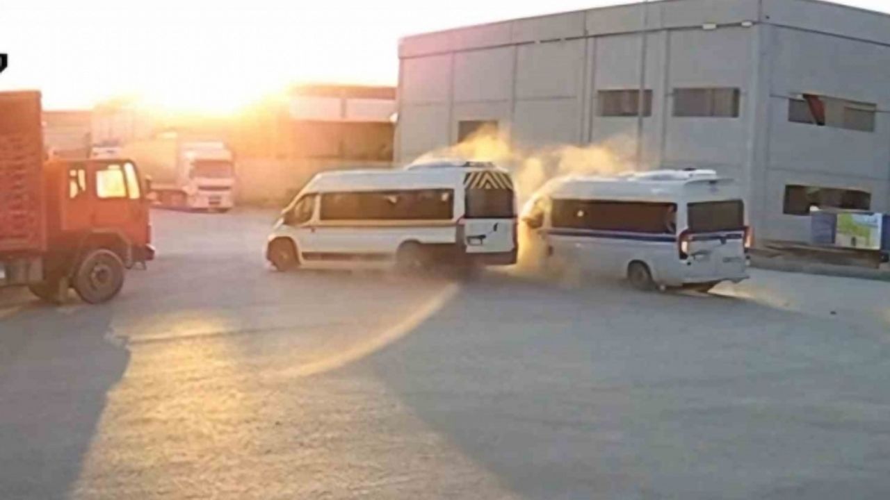 Öte yandan kaza anı başka bir fabrikanın güvenlik kamerası tarafından saniye saniye kaydedildi. Görüntüde iki minibüsün, kavşakta çarpışması ve araçların savrulması yer alıyor.