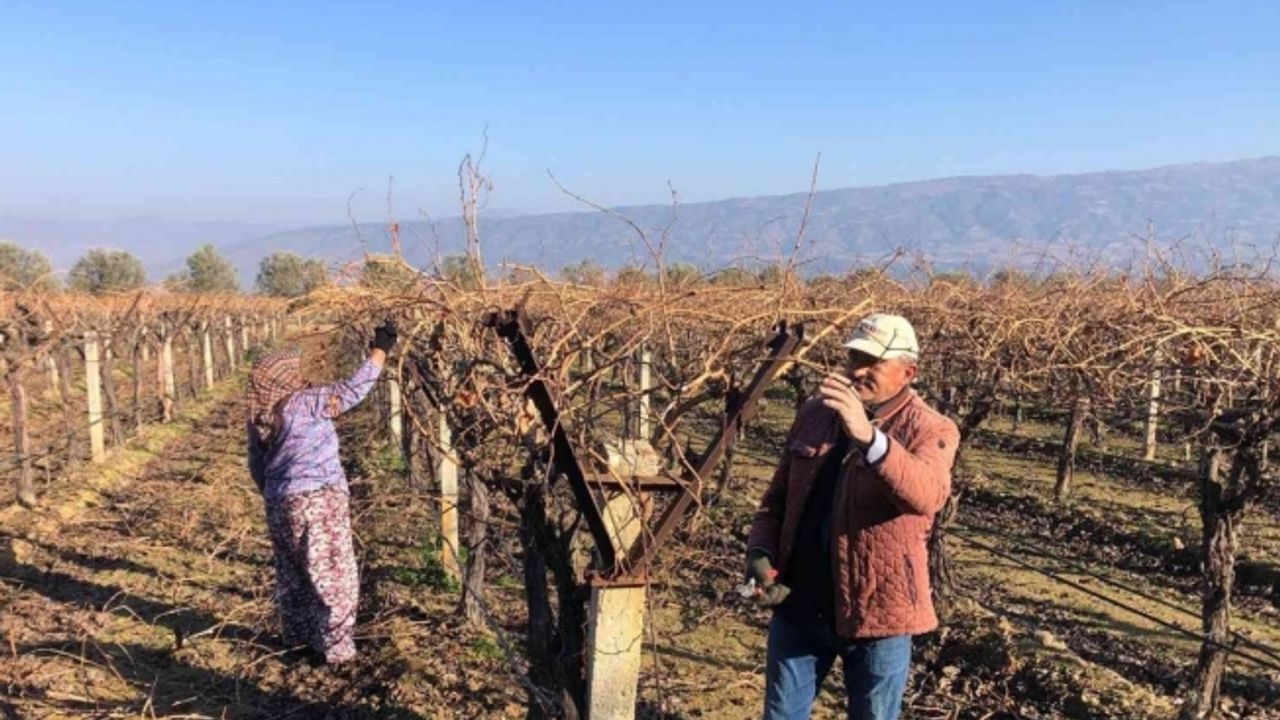 Manisa’nın dünyaca ünlü Çekirdeksiz Sultaniye üzümünün yetiştirildiği Sarıgöl Ovasında üzüm üreticileri üzüm bağlarındaki budama işlerini ailece yapmaya başladı.