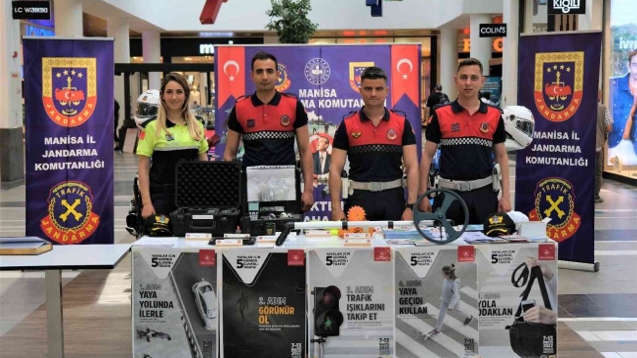 Manisa İl Jandarma Komutanlığı Trafik Şube Müdürlüğüne bağlı Motosikletli Trafik Timleri “Trafik Haftası” dolayısıyla açtıkları stantta vatandaşlara hem kullandıkları ekipmanları tanıttı hem de trafik kuralları hakkında bilgilendirmelerde bulundu. Minik ziyaretçilerini de ihmal etmeyen jandarma ekipleri onlara balon ve boyama kitabı hediye etti.