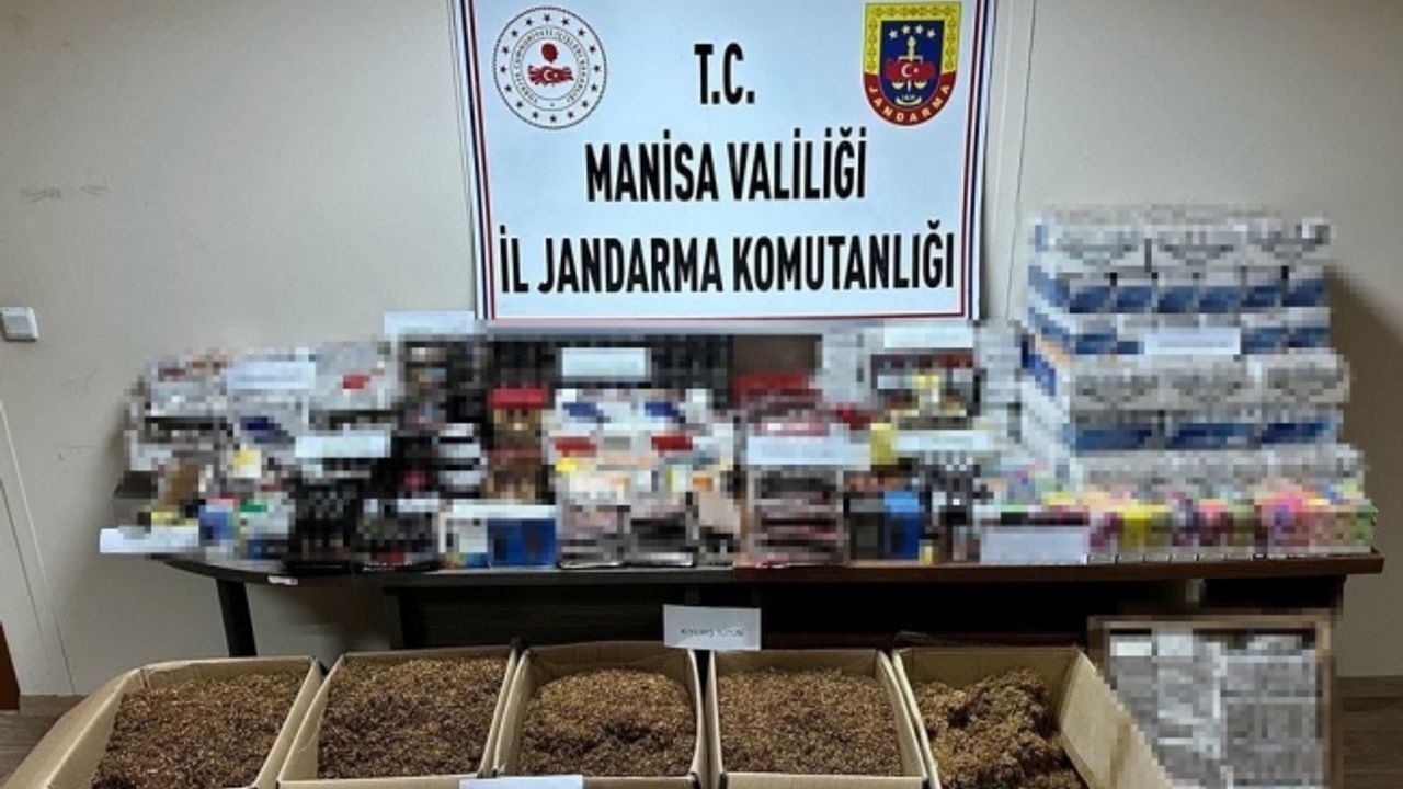 Manisa’nın Yunusemre ilçesinde 1 Haziran günü saat 16.00 sıralarında Yunusemre İlçe Jandarma Komutanlığı ve İl Jandarma Komutanlığı KOM Şube Müdürlüğü ekiplerince ortak yapılan operasyonda; piyasa değeri yaklaşık 810 bin TL olan, 81 bin 259 adet içi tütün doldurulmuş makaron, 175 bin 980 gram açık tütün, 4 bin 199 adet boş makaron, 836 paket bandrolsüz sigara, 7 bin 600 adet sigara sarma kağıdı, 16 bin 700 gram nargile tütünü, 380 adet nargile kömürü, 16 bin 747 gram nargile aroması, 40 adet puro, 14 kilogram kaçak çay, 98 adet elektronik sigara, 154 adet elektronik sigara likiti, 20 adet sigara sarma makinesi ele geçirildi. Jandarma tarafından olayla ilgili adlî işlemlere başlandığı açıklandı.