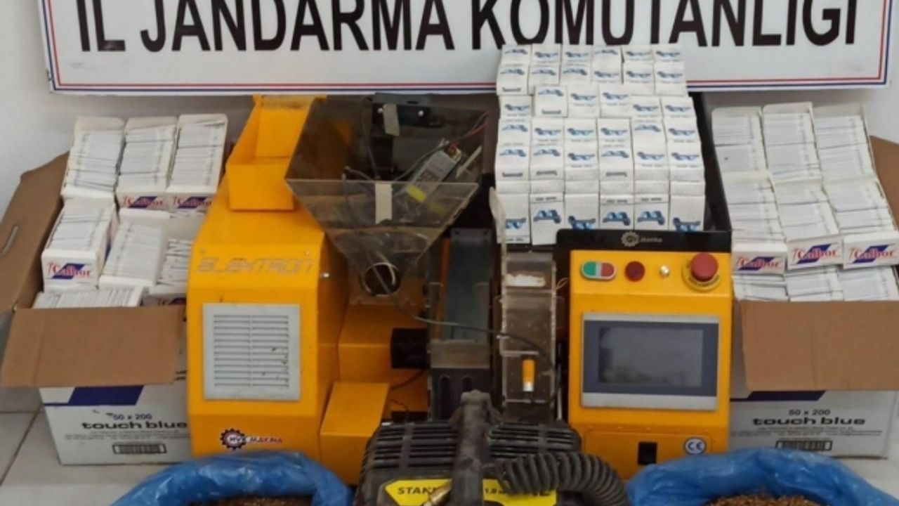 Manisa’nın Kırkağaç ilçesinde jandarma ekipleri tarafından 5 şüpheli şahsın ev ve işyerlerinde yapılan aramada tütün dolu ve boş makaronlar, tütün ve sigara sarma makineleri ele geçirildi.
