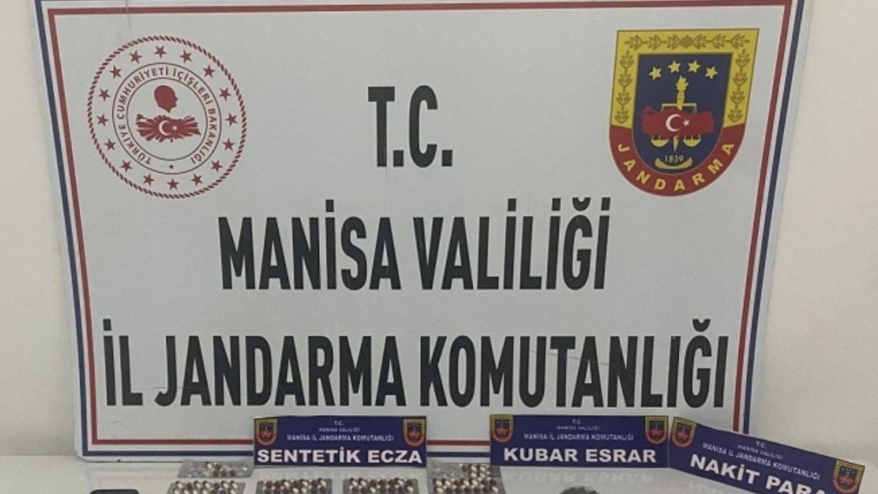 Manisa’nın Yunusemre ilçesinde jandarma ekipleri tarafından yapılan denetimde üzerinde sentetik ecza haplarıyla yakalanan motosiklet sürücüsü ve sürücünün hapları temin ettiği şahıs gözaltına alındı.