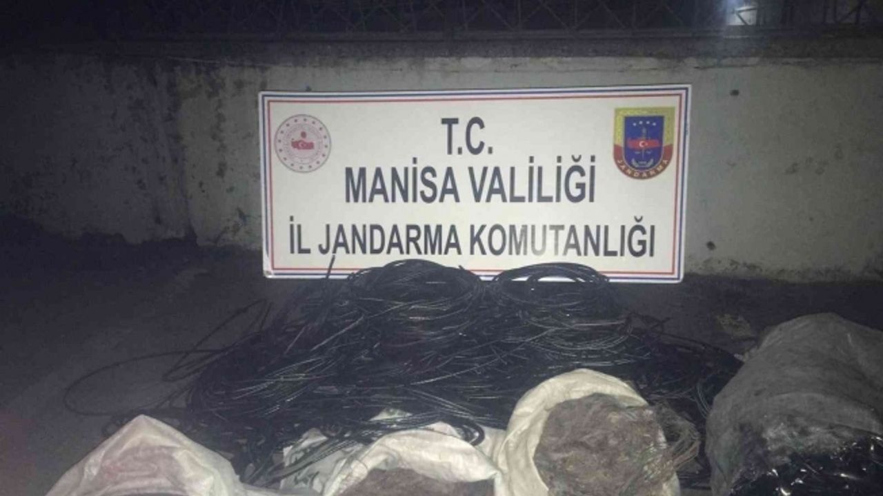 Manisa’nın Demirci ilçesine bağlı Güveli Mahallesi’nde Manisa İl Jandarma Komutanlığına bağlı JASAT ile Demirci İlçe Jandarma Komutanlığı ekiplerinin istihbarat çalışması sonucu kablo hırsızlığı yaptığı belirlenen M.Y.’nin evine operasyon düzenlendi. Ev ve eklentilerinde yapılan aramalarda 65 kilogram bakır kablo ile 150 metrelik haberleşme kablosu ele geçirildi. Öte yandan, operasyonda M.Y.’ye yardım ettiği belirlenen A.A.B. de yakalanarak gözaltına alındı.