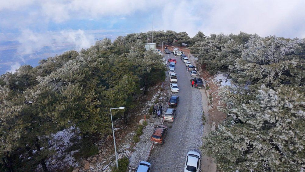 Kar hasretini gidermek için Spil Dağı Milli Parkı'na çıkan vatandaşlar, Atalanı günübirlik piknik alanına yaklaşık 2 kilometre mesafede bulunan ve karla kaplanmış Orman Yangın Gözetleme Kulesi ile Turan Bayrak Tepe mevkine çıkarak kartpostallık muhteşem manzaraları izlediler. Çocuklar kartopu oynamayı tercih ederken, anne babaları ise bulutlarla aynı yükseklikte yanlarında getirdikleri termoslardaki çay ve kahvelerini yudumlarken manzaranın tadını çıkardılar.