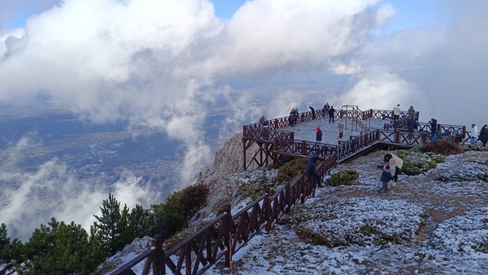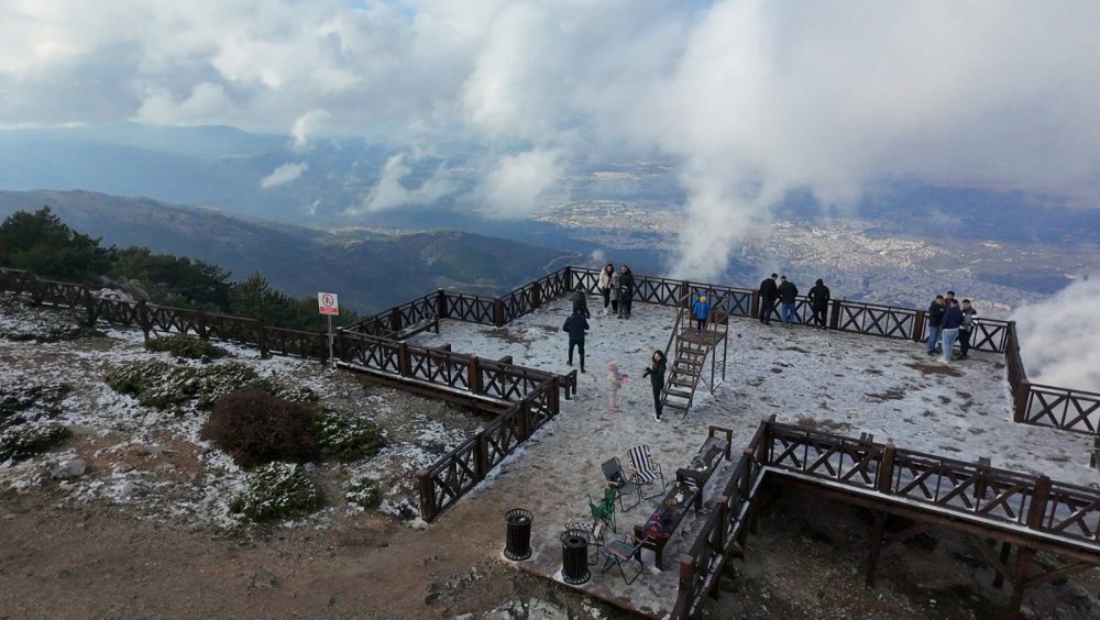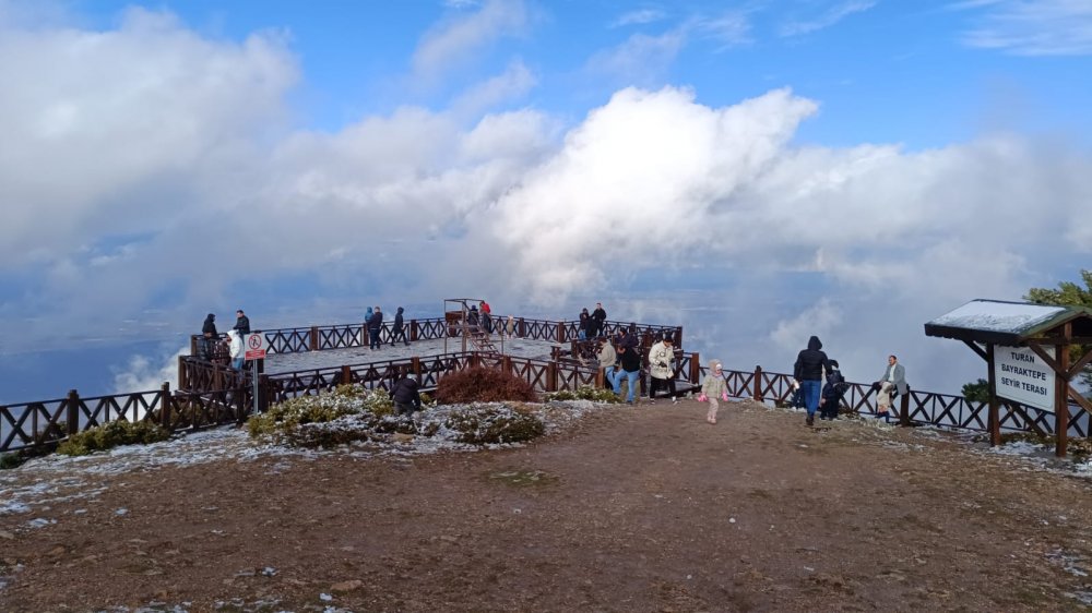 Kar hasretini gidermek için Turan Bayrak Tepe mevkin gelen vatandaşlar, burada bulunan terasta, bulutların üzerinden Manisa'ya izleme fırsatını da yakaladı. Kar manzarasını izlemeye gelenler arasında sadece Manisalılar değil, İzmir'in değişik ilçelerinden ve diğer illerden de gelen vatandaşlar da yer aldı.