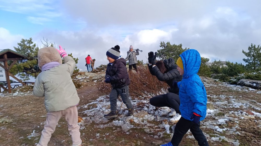 Çocuklarıyla birlikte gelen aileler de az da olsa çocuklarına kartopu oynama fırsatı verdi ve çocuklar karda doyasıya eğlendiler.