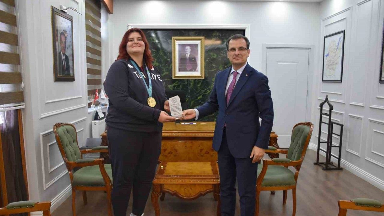 Ziyarette İlçe Spor Müdürü Oktay Ayaz da hazır bulundu. Hilal Öztürk ise desteklerinden dolayı Kaymakam Güldoğan’a teşekkür ederek yeni hedefleri için çalışmalarını sürdüreceğini ifade etti.