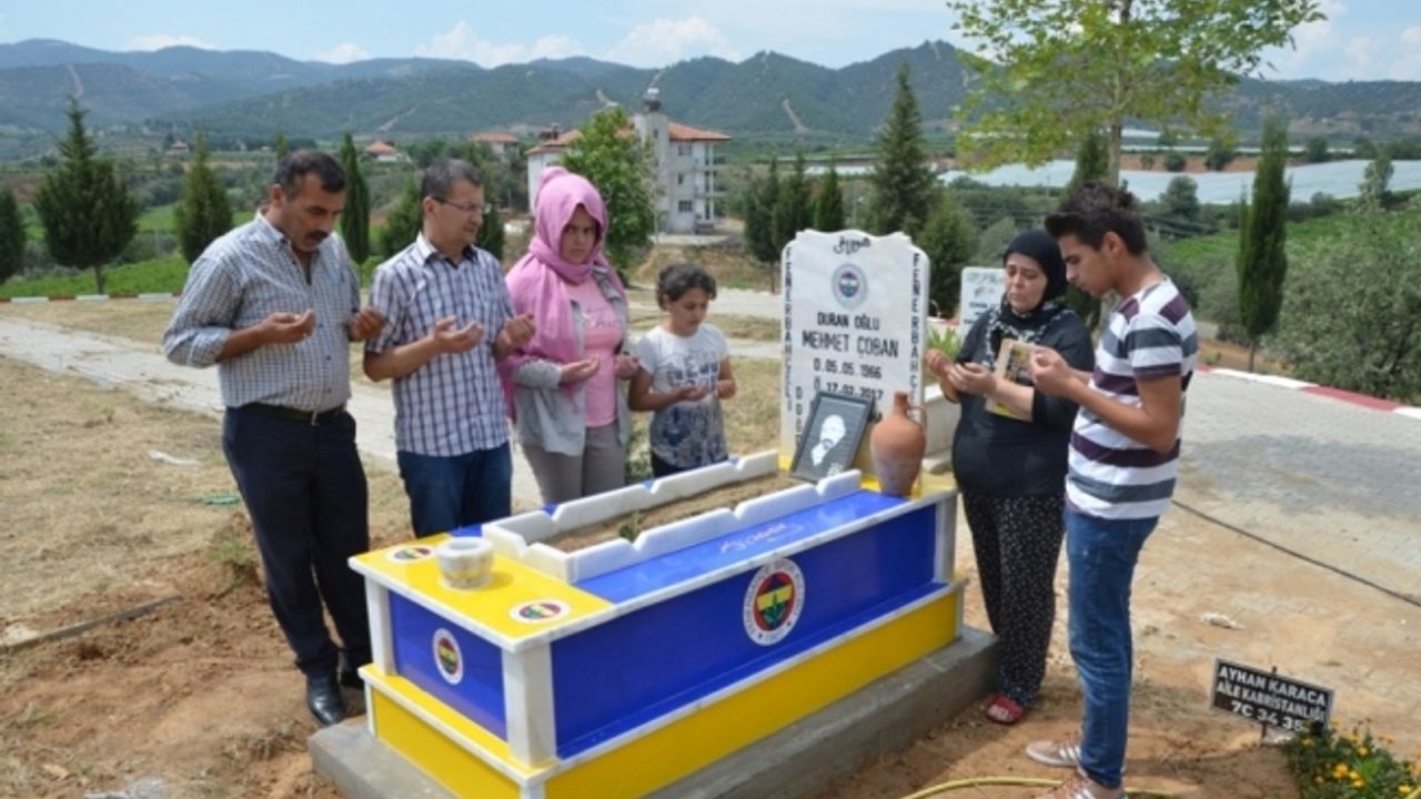 Merhum Mehmet Çoban’ın eşi Aynur, kızı Canan Tuğçe, oğlu Atacan ve arkadaşları mezar başında Fatiha okuyarak Çoban’ın son arzusunu yerine getirmenin mutluluğunu yaşadıklarını belirtti. Çoban’ın mezar taşında yazan ’Fenerbahçeli doğdu, Fenerbahçeli öldü’ yazısı ise dikkat çekti.