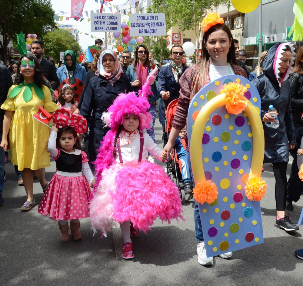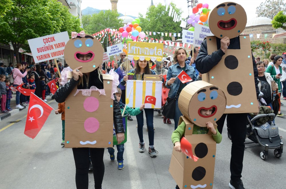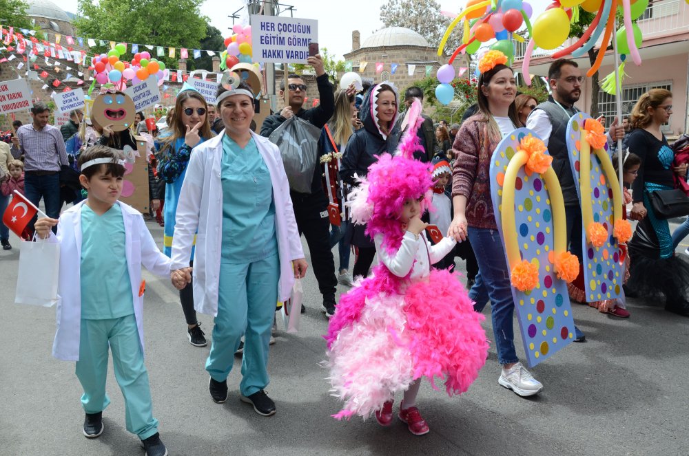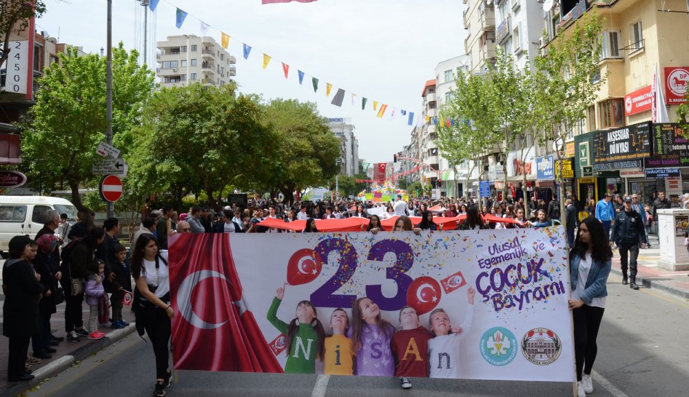 Manisa’da çocuklar bayram coşkusunu doyasıya yaşadı. Resmi kutlamaların ardından çok sayıda çocuğun katıldığı yürüyüş yapıldı. Sultan Cami’nden başlayan yürüyüşte Kelebekler Diyarı Anaokulu'nun çocukları, çizgi film kahramanlarının kıyafetlerini giydi. Çocukların bayram coşkusuna anne babaları da eşlik etti. Uzun bir kortej oluşturan çocuklar bando takımı ile birlikte yürürken, Manisalılar da bu anları cep telefonları ile görüntüledi. Yürüyüşe Manisa Aile, Çalışma ve  Sosyal Hizmetler İl Müdürlüğü’nün sevgi evlerinde kalan çocuklar da katıldı. Çocuklar ellerinde çocuk haklarını anlatan pankartlar taşıdı. Manisa sokaklarını renklendiren çocuklar yürüyüş boyunca çocuk şarkıları söyledi. Cumhuriyet Meydanı’nda sona eren yürüyüşün ardından meydanda kurulan stantlarda çocuklar gönüllerince eğlendi.