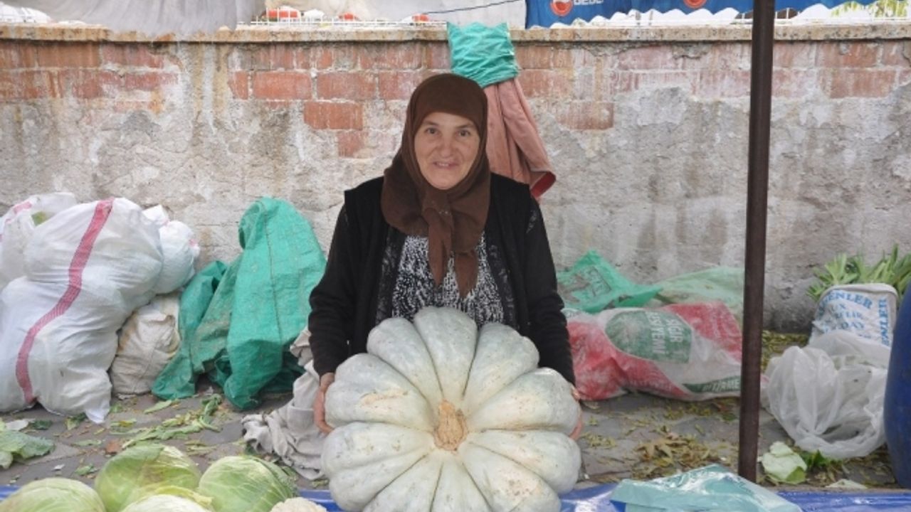 Uzun yıllardır pazarcılık yaparak geçimini sağlayan Ayşe Mat tarafından yetiştirilip satılan 32 kilogramlık dev kabak, pazara gelenlerin büyük ilgisini çekti. Dev kabağı gören vatandaşlar şaşkınlıklarını gizleyemezken, birçok kişi 32 kilogram gelen kabakla hatıra fotoğrafı çektirdi. 50 TL’ye alıcı bulan kabak sayesinde vatandaşların sergilerine büyük ilgi gösterdiğini söyleyen Ayşe Mat, “Yaklaşık 20 yıldır pazarcılıkla uğraşıyorum. Kendi tarlamızda yetiştirdiğimiz bu 32 kilogramlık kabağa Kırkağaçlılar büyük ilgi gösterdi. Fotoğraf çekilenler oldu. 50 TL’ye bir müşterimize sattık. Afiyet olsun” diye konuştu.