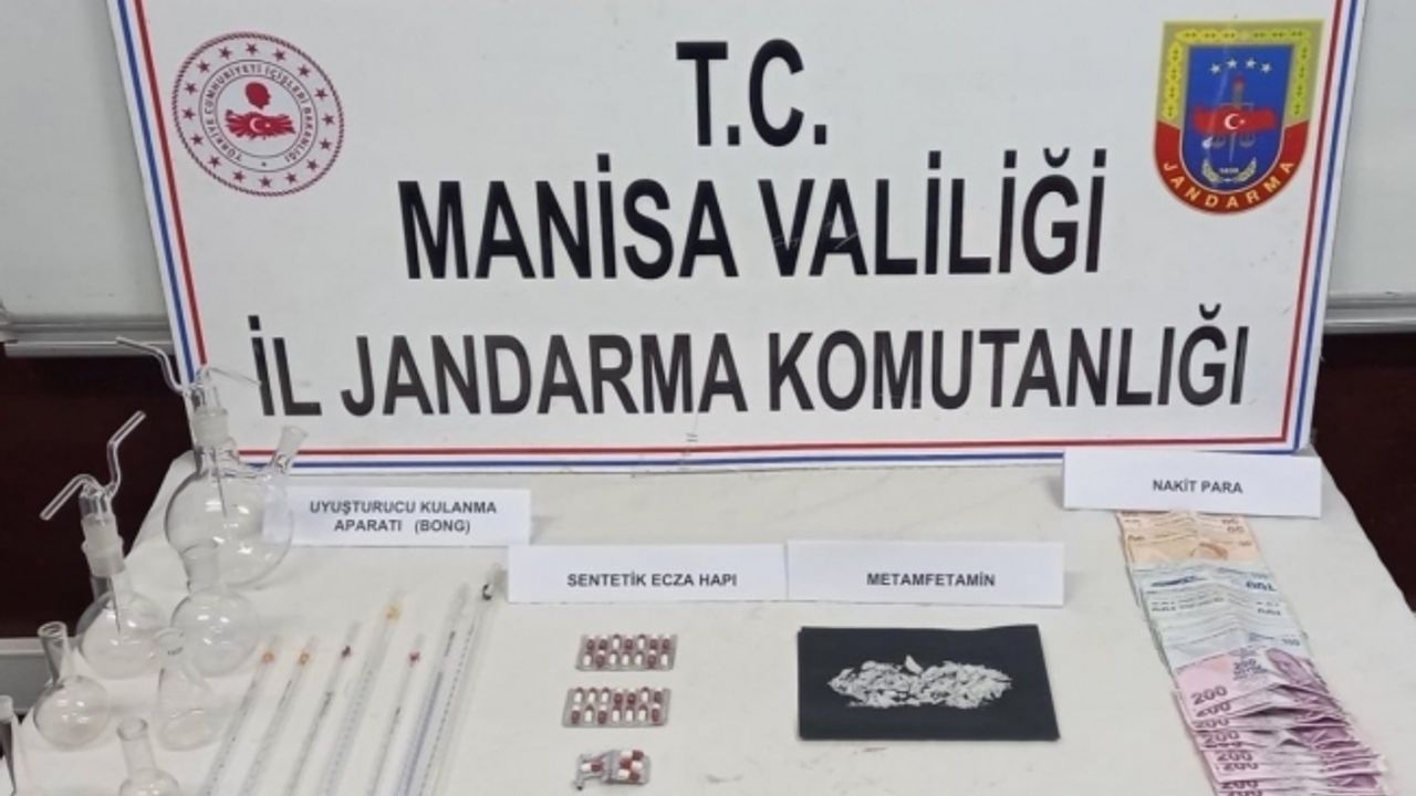 Kırkağaç ilçesinde dün gece saat 01.00 sıralarında İl Jandarma Komutanlığı KOM Şube Müdürlüğü ve Kırkağaç İlçe Jandarma Komutanlığı ekiplerince yapılan istihbari çalışma sonucu Kırkağaç-Soma Karayolu üzerinde durdurulan bir araçta yapılan aramada 32 adet sentetik ecza hap, 105 gram metamfetamin, 9 adet uyuşturucu kullanma aparatı, 10 bin 750 TL para ele geçirildi. Araçta bulunan 2 şüpheli, adli makamlara sevk edilmek üzere jandarma ekipleri tarafından gözaltına alındı.