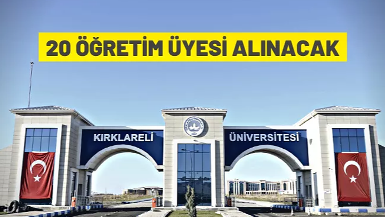 Kırklareli Üniversitesi Rektörlüğü, 2547 sayılı Kanun, 657 sayılı Devlet Memurları Kanunu, Devlet Yükseköğretim Kurumlarında Öğretim Elemanı Norm Kadrolarının Belirlenmesine ve Kullanılmasına İlişkin Yönetmelik, Öğretim Üyeliğine Yükseltilme ve Atanma Yönetmeliği ve Üniversite'nin Öğretim Üyeliğine Yükseltilme ve Atanma Kriterlerine göre 20 Öğretim Üyesi alacak.