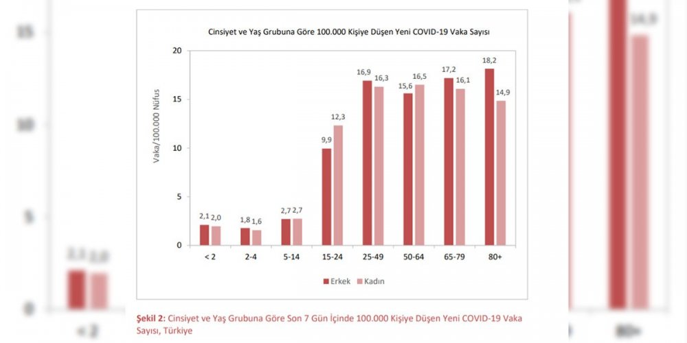 Raporda ayrıca; ‘Onaylanan vakaların içinde yaşı bilinmeyen sadece 1 vaka mevcuttur. Son 7 gün içinde, 100 bin kişiye düşen en yüksek yeni COVID-19 vaka sayısı 80 yaş ve üzeri erkek bireylerde görülmüştür’ bilgisi de yer aldı.