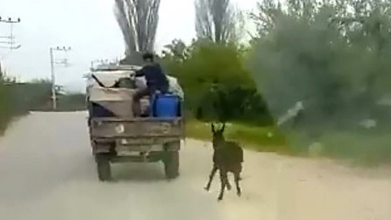 Manisa’nın Turgutlu ilçesine bir traktörün römorkuna iple bağlanarak götürülen eşeğin görüntüleri sosyal medyada paylaşılınca konuyla ilgili ekiplerce çalışma başlatıldı. Eşeğe kötü muamele yapan şahıslar, jandarma tarafından tespit edilerek işlem yapıldı.