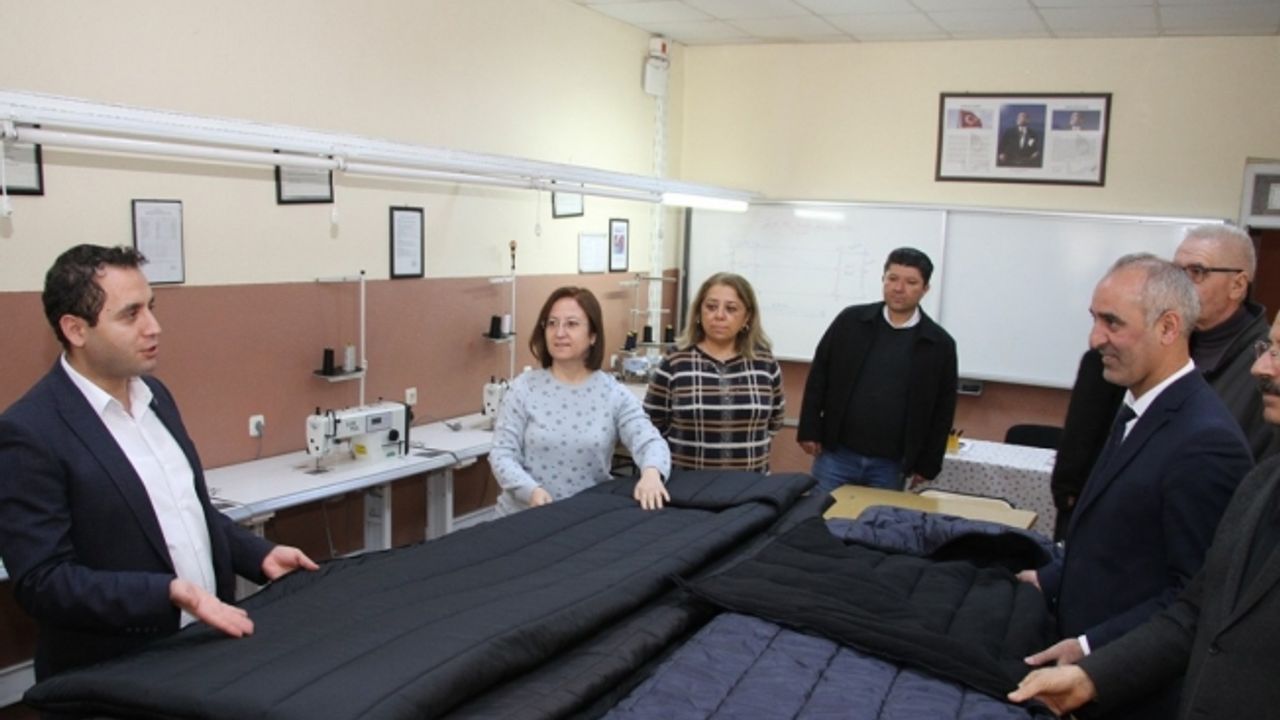 Hayırsever vatandaşların kumaş desteği sağladığı, gönüllü vatandaşlar ve 9, 10 ve 11. sınıf Moda Tasarım bölümü öğrencileri ile bölüm öğretmenleri tarafından üretilen tulumlar, 3 Mart Cuma günü kaymakamlık koordinesinde bölgedeki afetzedelere ulaştırılmak üzere yola çıkarılacak.