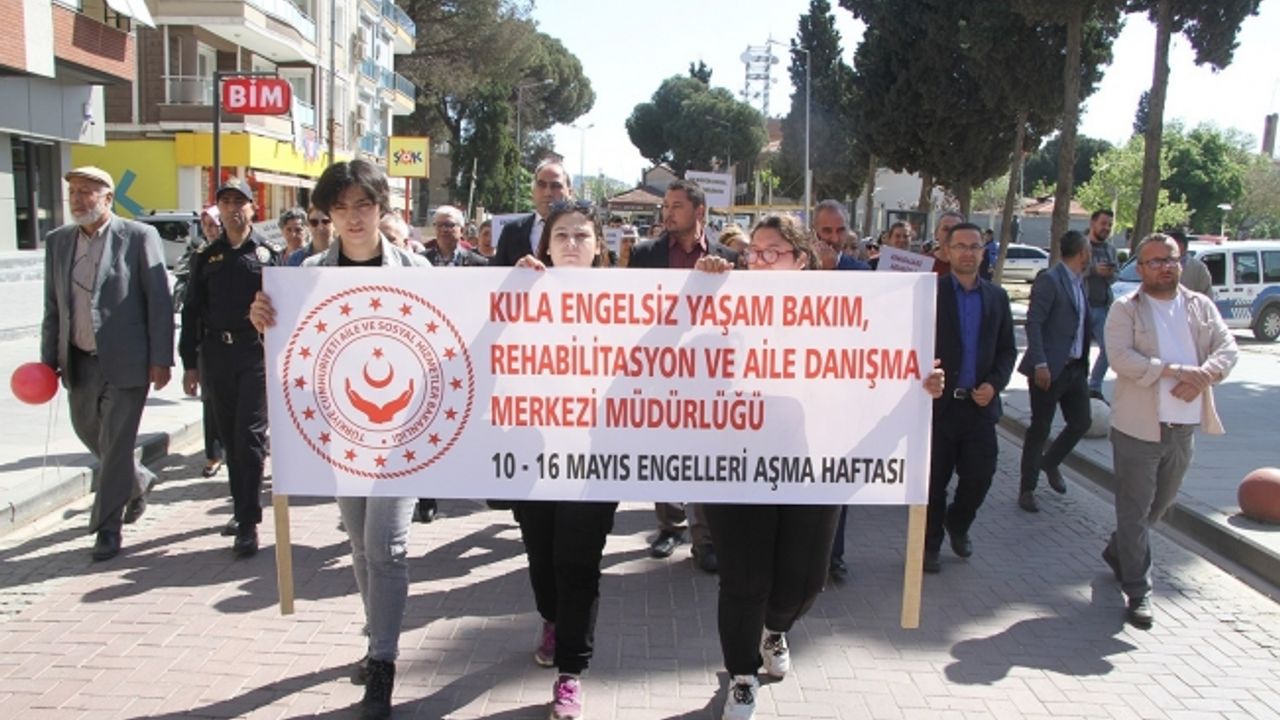 Her yıl 10-16 Mayıs tarihleri arasında kutlanan Dünya Engelliler Haftası dolayısıyla Kula Yunus Emre Kent Meydanı’nda bulunan Atatürk Anıtı’na Kula 80. Yıl Engelsiz Yaşam Bakım Rehabilitasyon ve Aile Danışma Merkezi Müdürlüğü tarafından çelenk sunuldu. Çelenk sunulmasının ardından saygı duruşunda bulunulup İstiklal Marşı okundu. Çelen sunma programının ardından bando takımı eşliğinde protokol üyeleri ve Kula 80. Yıl Engelsiz Yaşam Bakım Rehabilitasyon ve Aile Danışma Merkezi Müdürlüğü sakinleri kortej yürüyüşü gerçekleştirdi. Ellerinde engellilere yönelik farkındalık pankartları bulunan kurum sakinleri, vatandaşlar tarafından alkışlanarak desteklendi. Kutlamaların gündüz etabı, Kula 100. Yıl Aile Çay Bahçesi’nde rehabilitasyon personelleri ve sakinler tarafından hazırlanan yardım kampanyası ziyaret edildi.