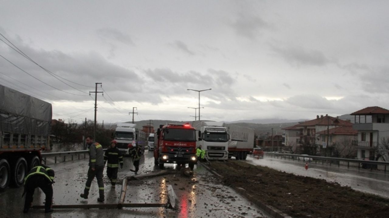 Kaza, saat 11.00 sıralarında İzmir-Ankara D300 karayolu Kavacık rampalarında meydana geldi. Edinilen bilgiye göre İzmir’den Uşak istikametine seyir halinde olan İnan Yaman (31) idaresindeki 61 K 12161 plakalı tır, geceden bu yana süren yağmur yağışının da etkisiyle kayganlaşan yolda sürücüsünün kontrolünden çıktı. Karayolunda savrulan tır, orta refüje çıkarak aydınlatma direklerini devirdi. Kaza esnasında karayolunun her iki istikametinde de araç bulunmaması büyük bir faciayı önlerken, tır sürücüsü de kazayı yara almadan atlattı.